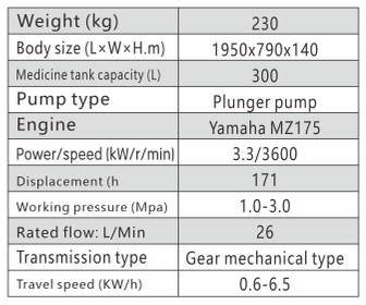 2. It is self-propelled and crawler-type, making it easy to travel, and highly adaptable to different working environments. It is equipped with a 300-liter medicine box to facilitate operation.
