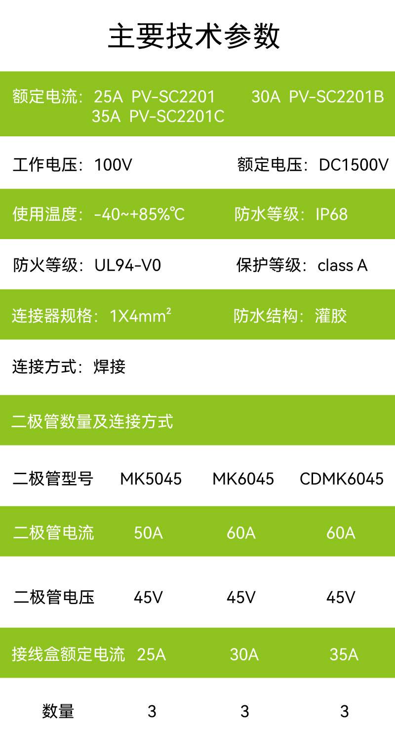 Solar panel 3 split junction box photovoltaic 1500V photovoltaic module junction wire accessories waterproof and fireproof