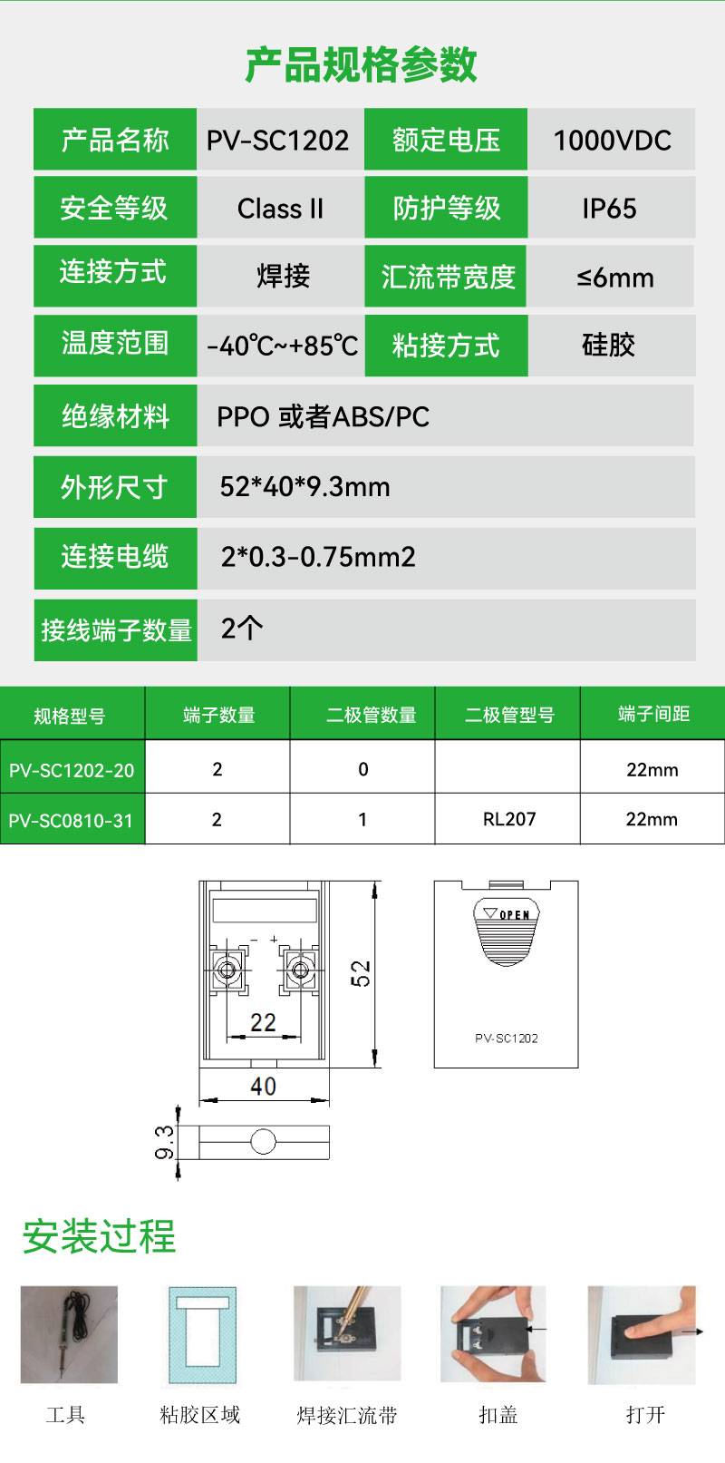 Photovoltaic module PV-SC2301 junction box High current sealed solar panel junction box Factory direct supply