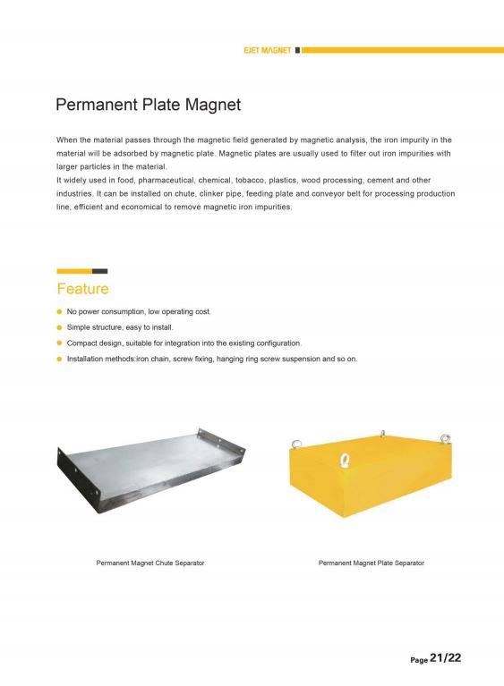 industries.It can be installed on chute,clinker pipe,feeding plate and conveyor belt for processing production line,efficient and economical to remove magnetic iron impurities.
