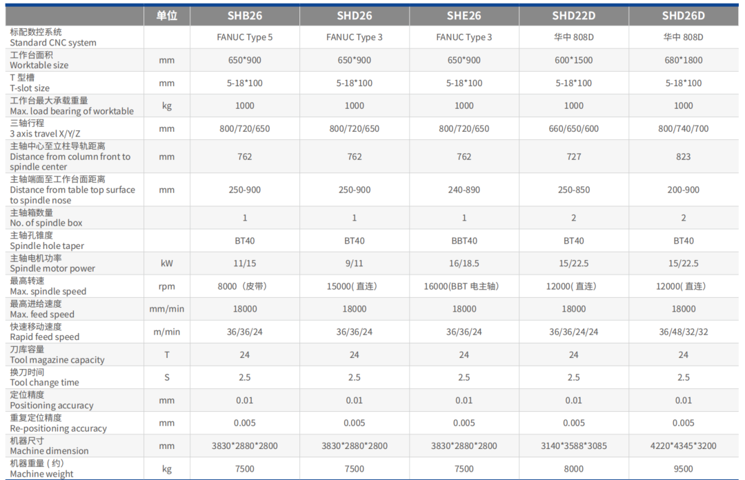 High-precision vertical, horizontal, gantry, overhead-type five-axis gantry, five-axis simultaneous machining centers; CNC milling machines and CNC lathes; conventional knee-type milling machines.