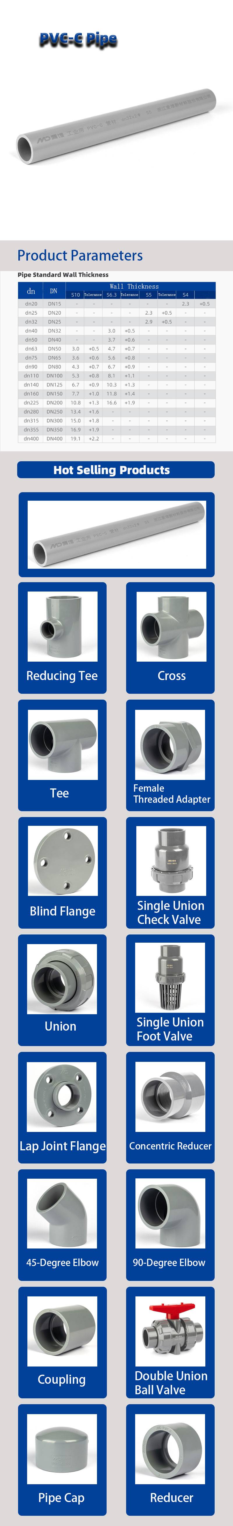 Main Products: PVC-U, PVC-C industrial pipe and valve parts