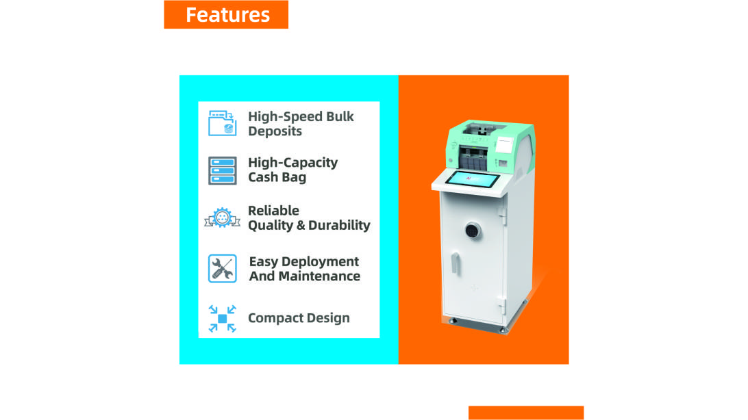 SuperiorPerformance: High banknotes processing speed (up to 780 notes/minute) with large infeed hopper considerably reduce deposit time for users. Optimized mechanical design and algorithm ensure ultra-low jam rate for smoother user experience.