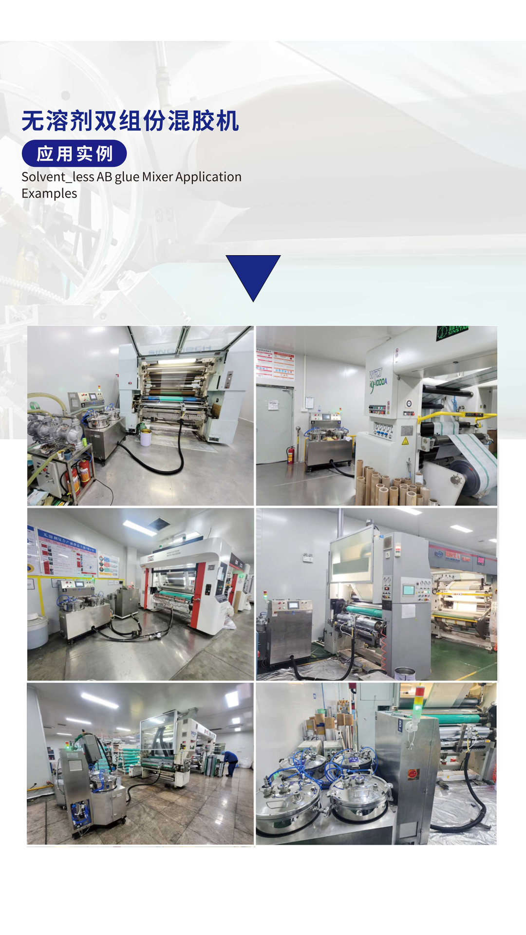 Main Products: Customized dry composite automatic glue dispensing machine, solvent-free two-component glue mixer, single-component PUR glue machine and coating glue dispensing system