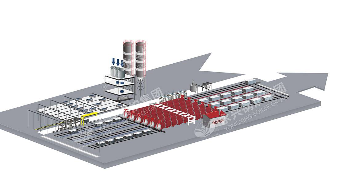 尽端式蒸压釜一端开门,进釜、出釜都在一端,减少了土地占用面积。