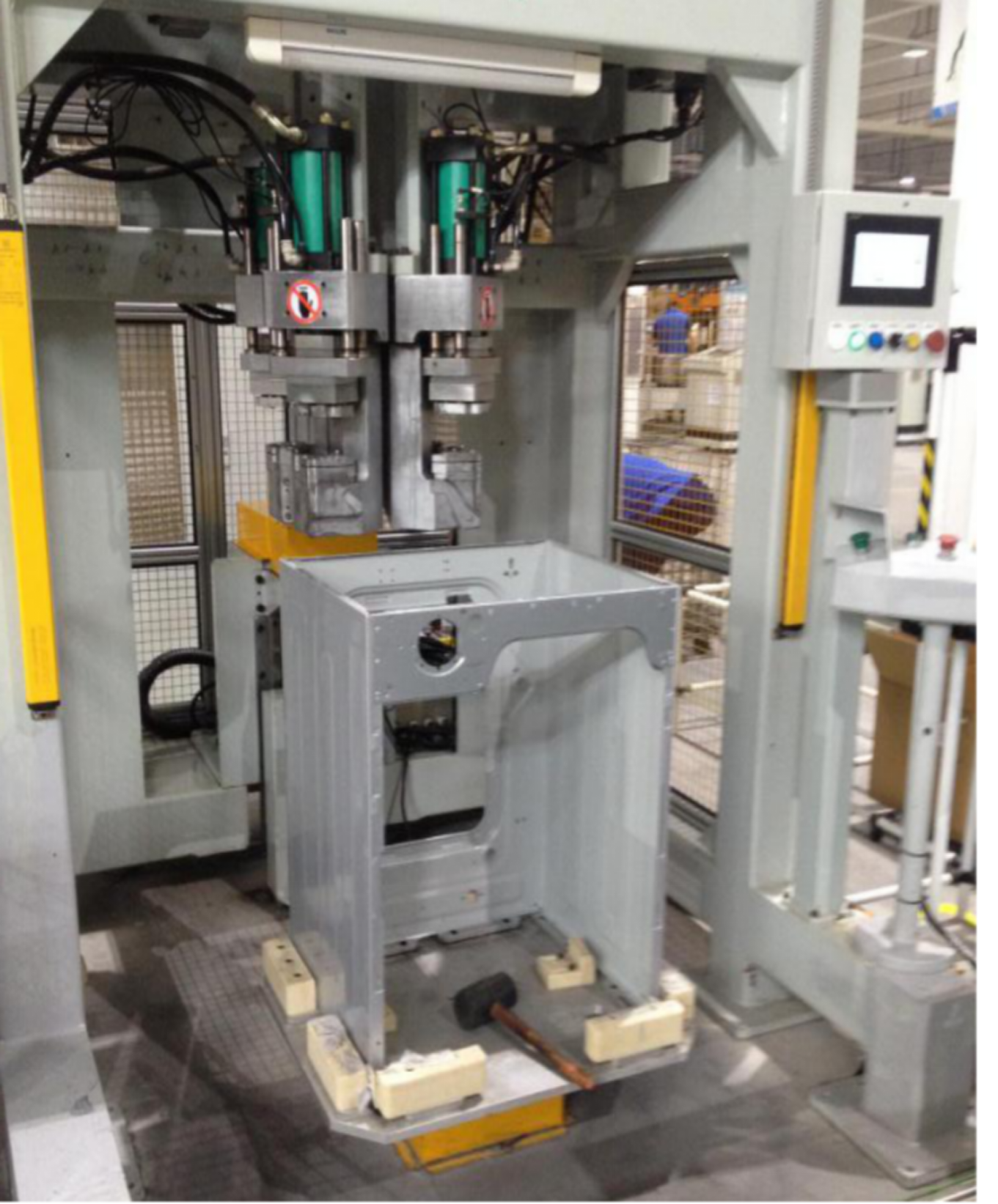 根据洗衣机外壳设计图,配置冲压线、折弯机和铆接机等专用设备。 可配置自动线。