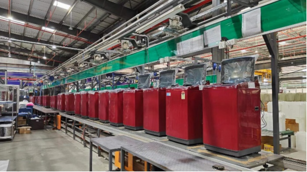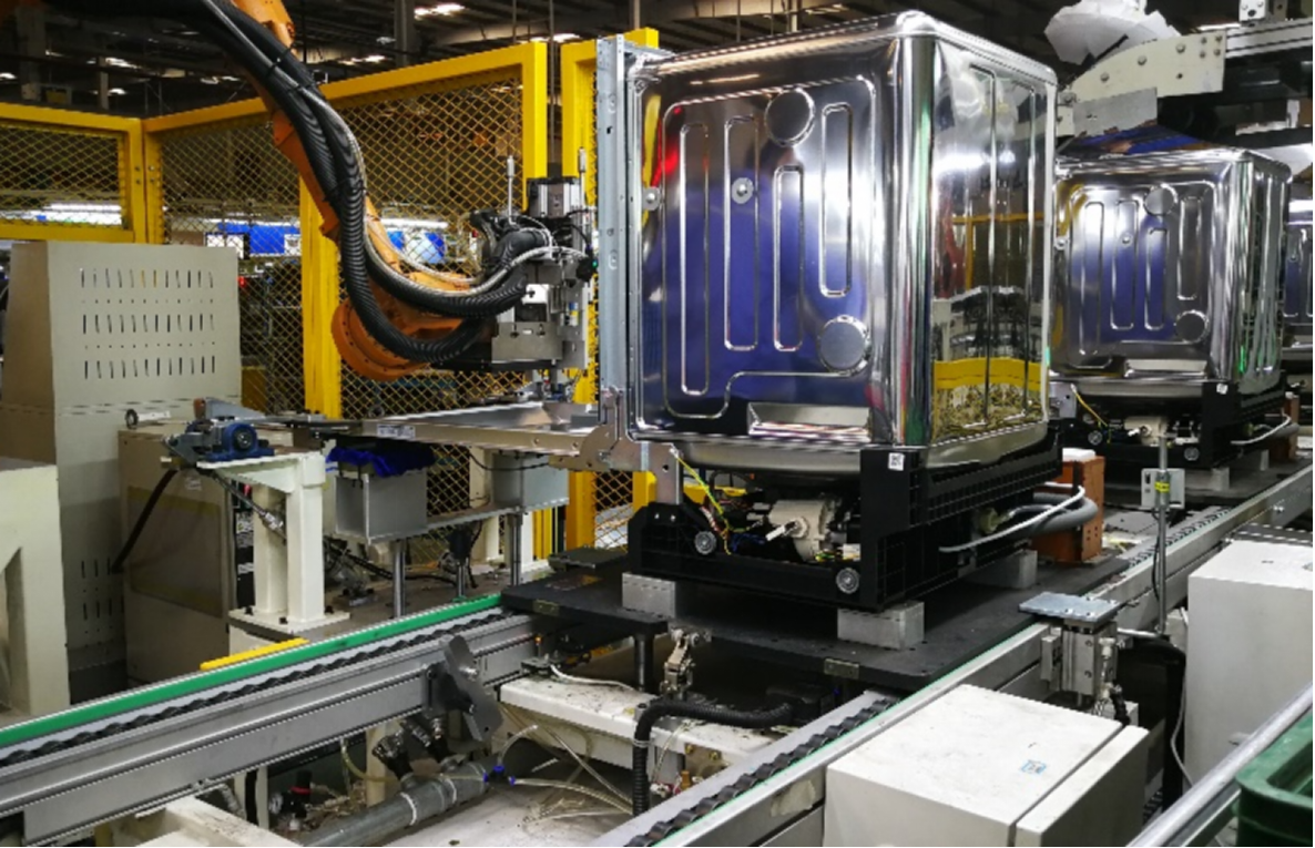 双桶半自动洗衣机、全自动洗衣机、滚筒洗衣机、洗碗机组装生产线。 可选配机器人自动化、信息化功能。