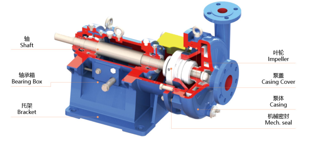 2、叶轮流道宽敞,水力性能高效,闭式叶轮前盖板设有背叶片,可减少介质泄漏,能根据介质特点选用不同形式的叶轮,互换性好。
