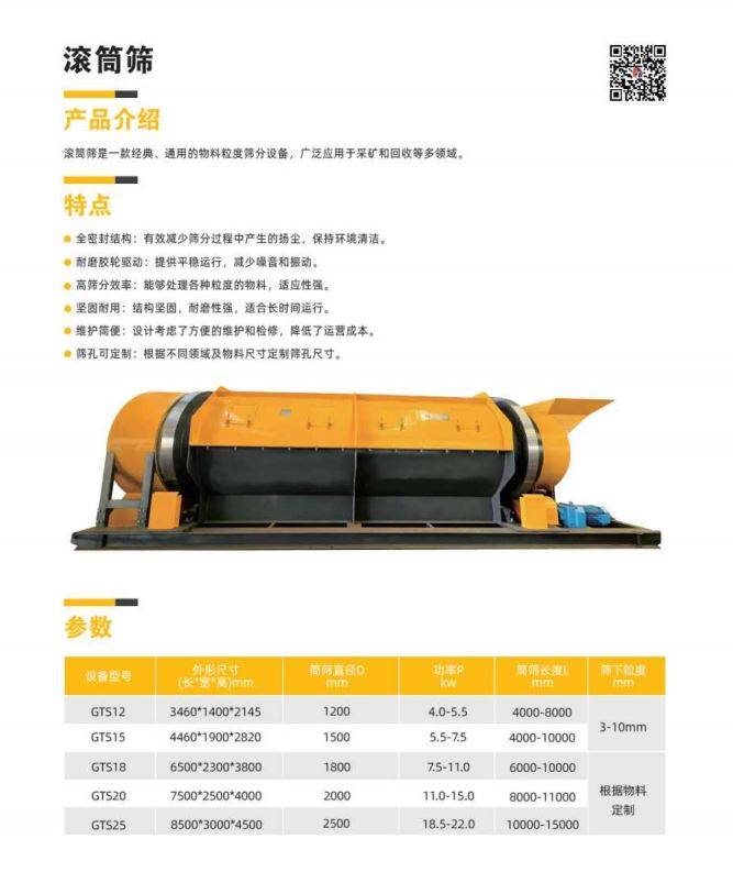 滚筒筛是一款经典、通用的物料粒度筛分设备,广泛应用于采矿和回收等多领域。