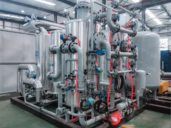 变压吸附(PSA)法在常温下分离纯化空气中的氮,即利用所选择的碳分子筛在一定的吸附操作压力下,优先选择吸附除N2以外的所有组分,在吸附器出口端获得用户要求氧含量的浓缩氮气,当吸附器压力降低时,这些被吸附的组分即被解吸,碳分子筛获得再生,所以选择一定数目的吸附器,按一定的程序轮流切换,使吸附器按一定顺序变动压力就组成连续分离气体混合物的PSA装置。