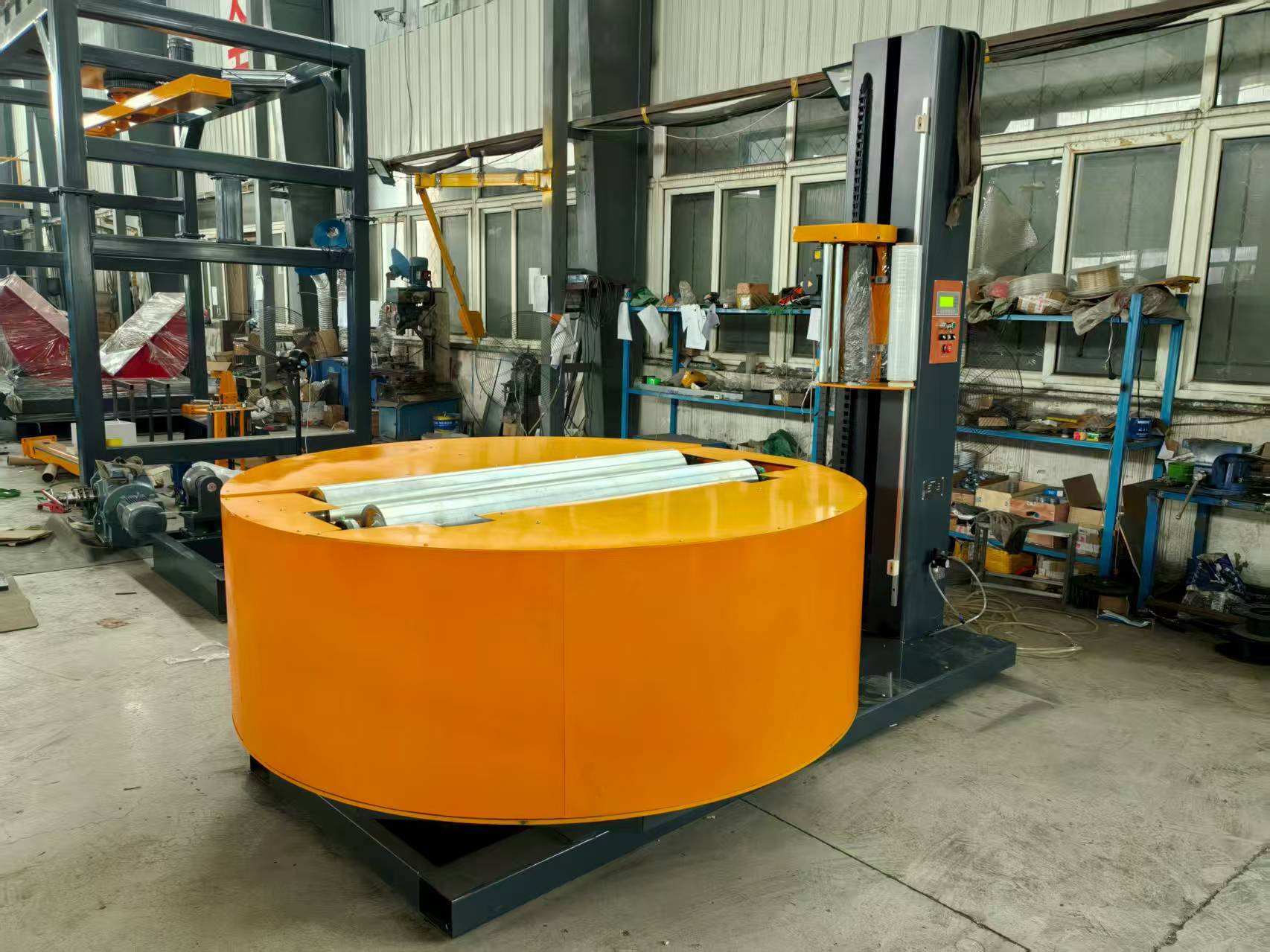 圆筒缠绕机在包装领域中,专门用于包装圆柱形货物,如卷材、管材、桶类等。它的主要作用是通过自动化的方式,将薄膜或纸张等材料紧密地包裹在圆筒状物体上,起到保护、固定和美化的作用。这种缠绕机能够提高包装效率和质量,减少人工成本,节约材料和能源,并且能够适应不同行业的特定需求。