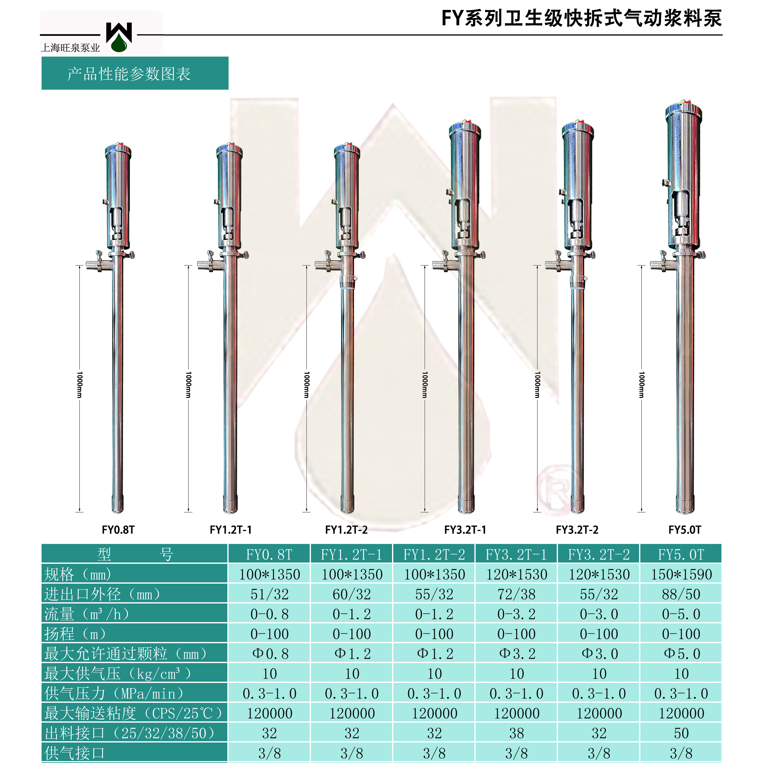 上海旺泉泵业FY-3A卫生级快拆式气动浆料泵具有以下优点: